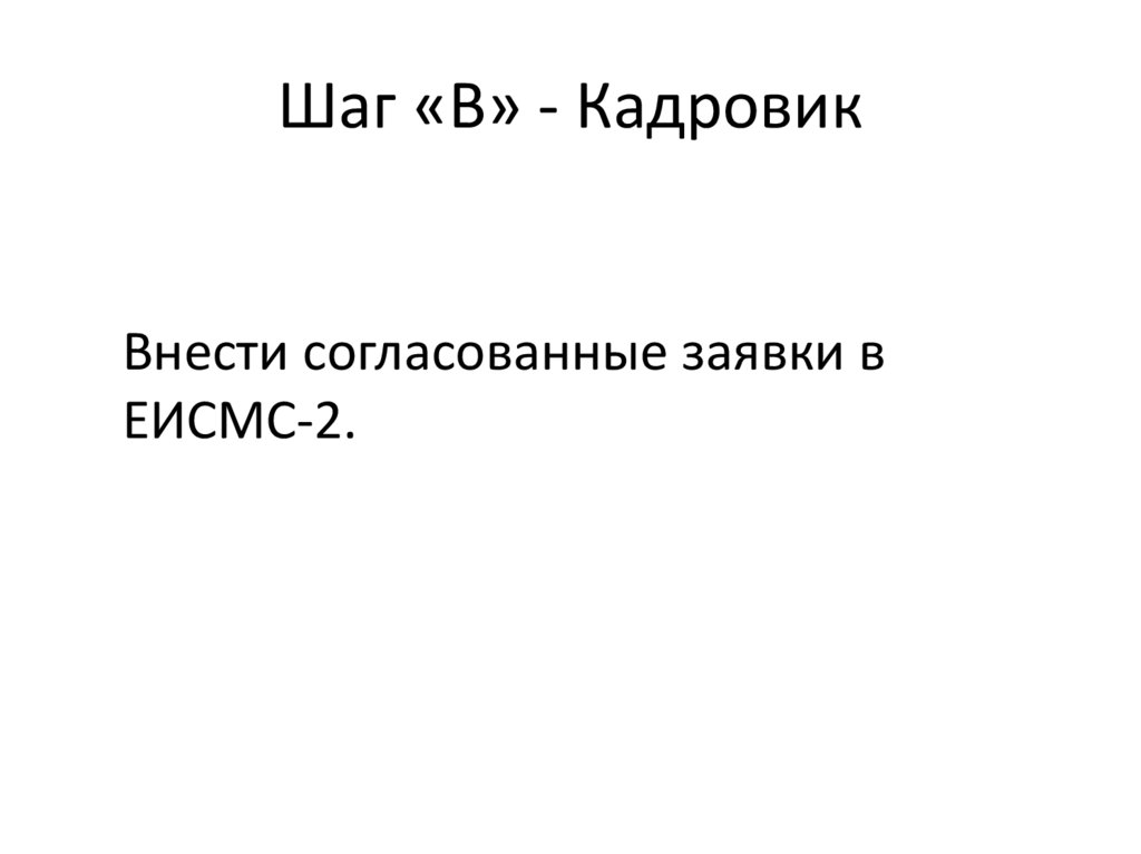 Шаг «В» - КадровикВнести согласованные заявки в
