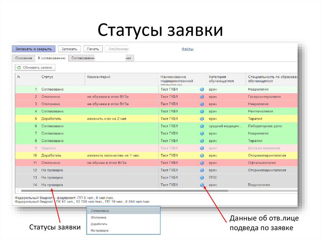 Статусы заявкиСтатусы заявки