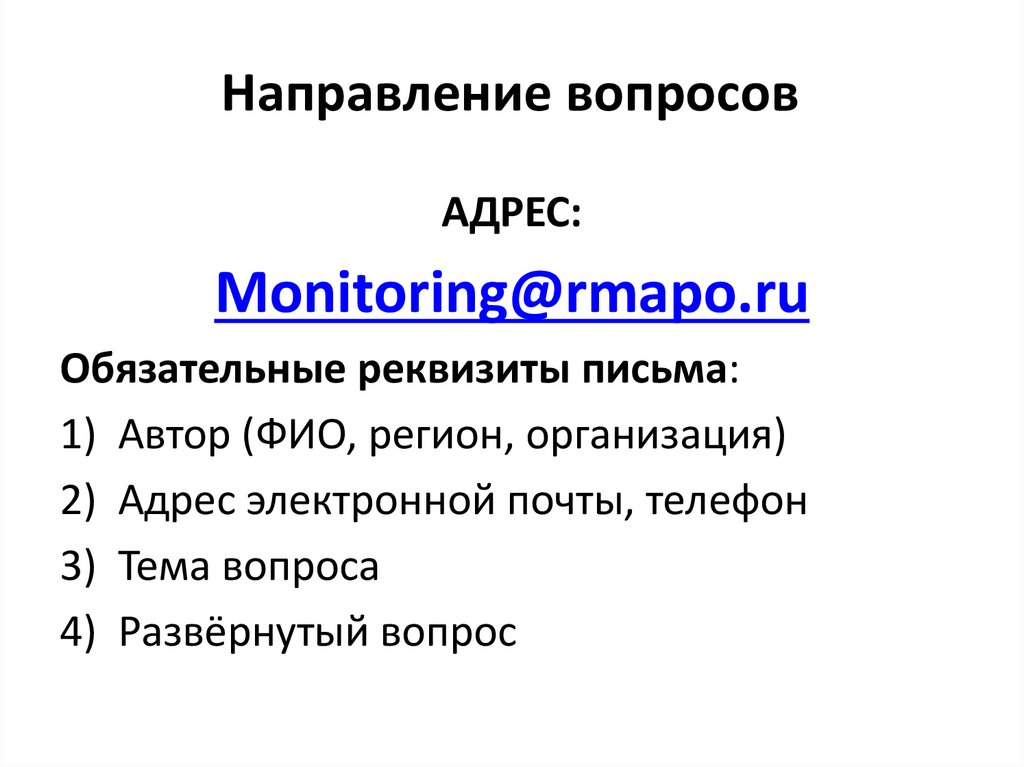 Направление вопросовАДРЕС: