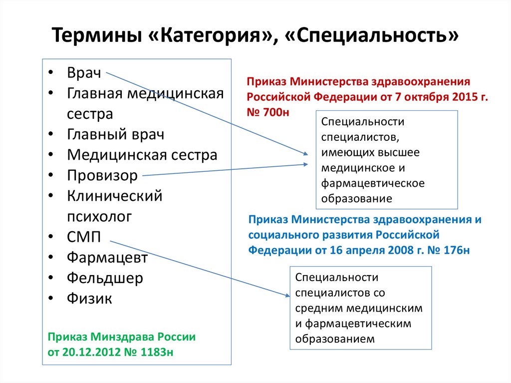 Термины «Категория», «Специальность»• Врач