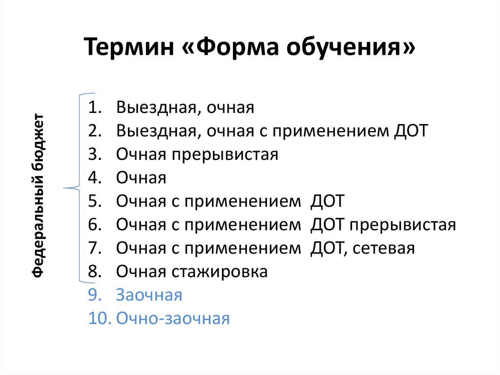 Федеральный бюджетТермин «Форма обучения»