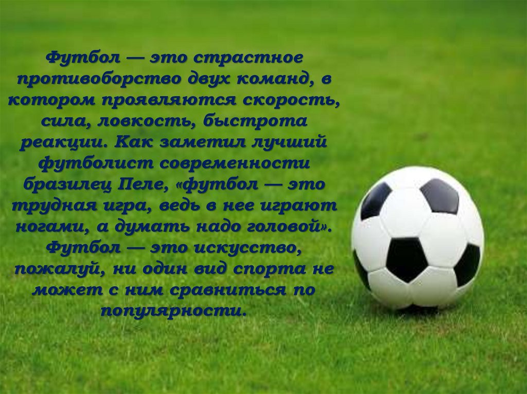 Футбол — это страстноепротивоборство двух команд, в