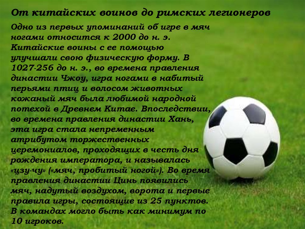 От китайских воинов до римских легионеровОдно из первых упоминаний об игре в мяч
