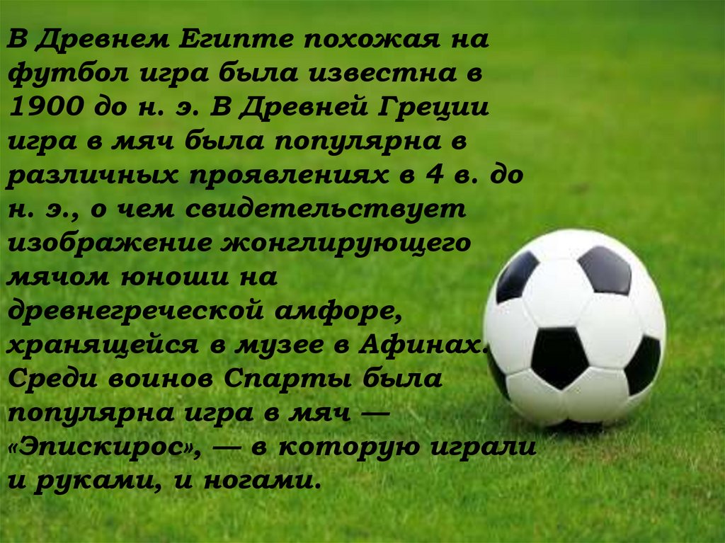 В Древнем Египте похожая нафутбол игра была известна в