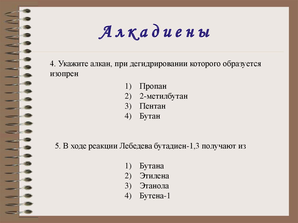 Алкадиены4. Укажите алкан, при дегидрировании которого образуется