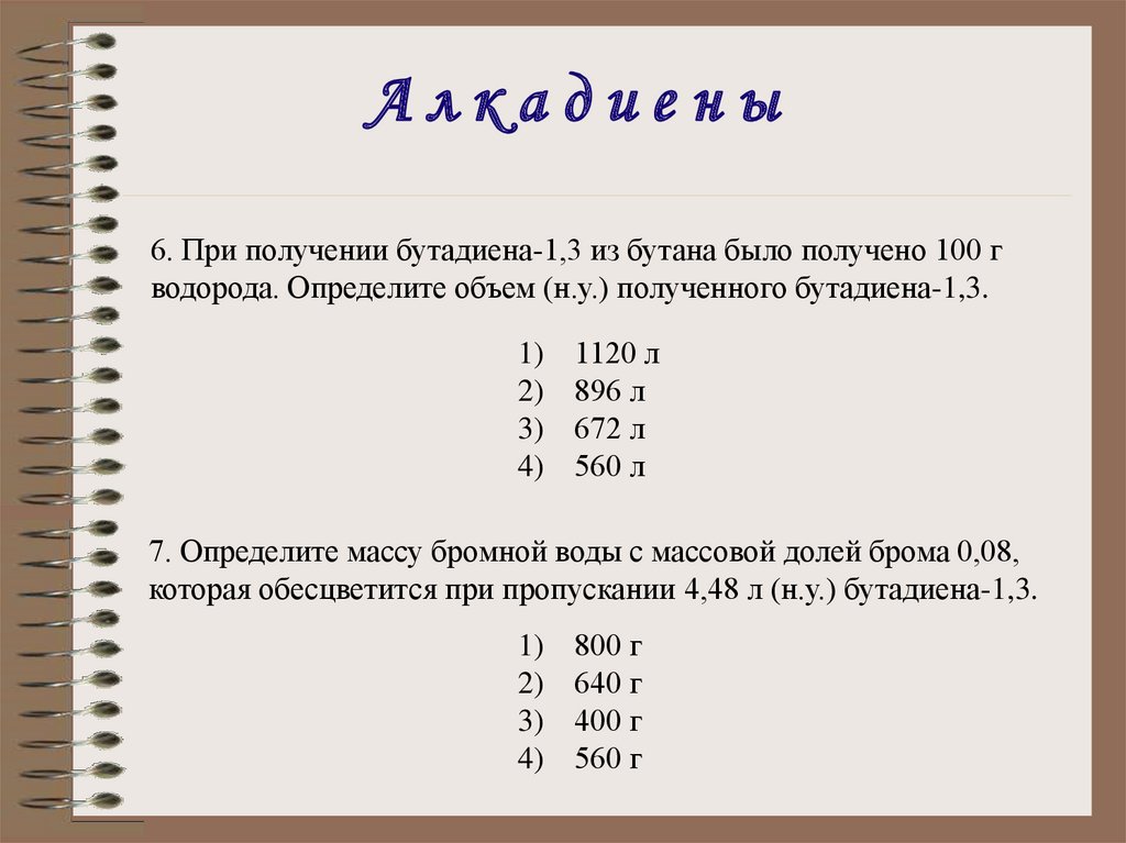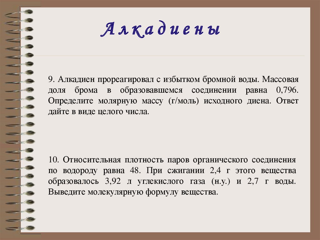 Алкадиены9. Алкадиен прореагировал с избытком бромной воды. Массовая