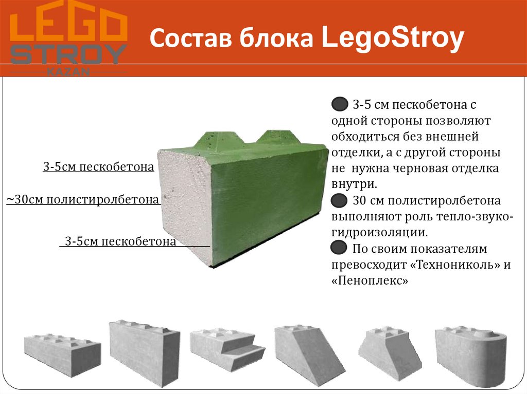 Состав блока LegoStroy3-5см пескобетона