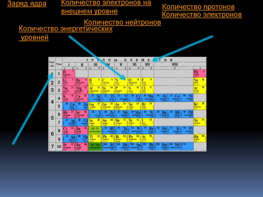 Заряд ядраКоличество электронов на