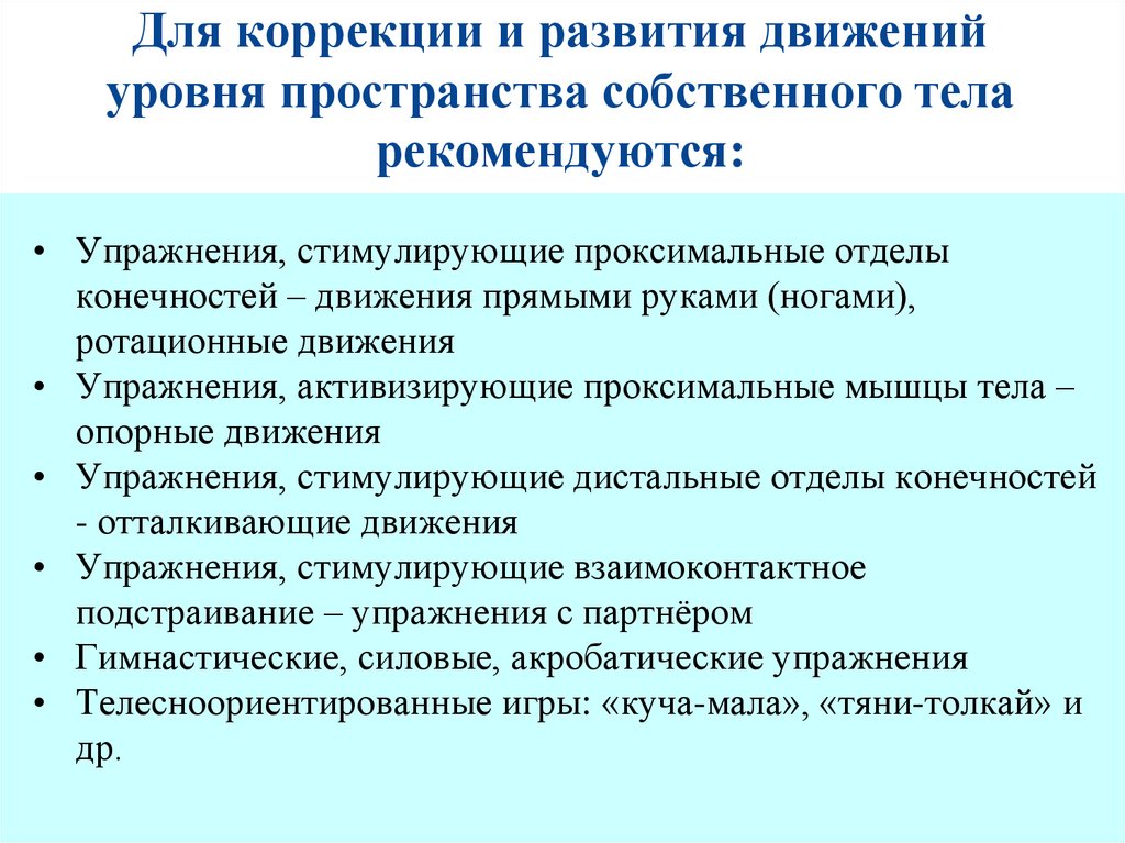 Коррекция и развитие движений уровняпространства собственного тела