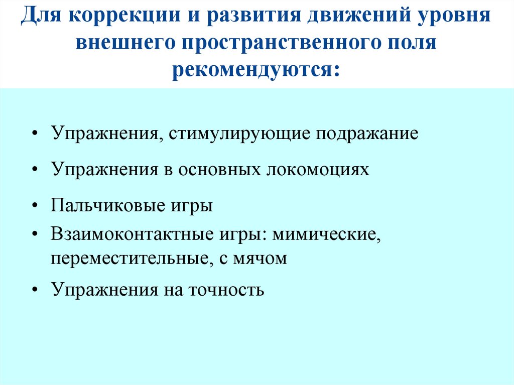 Для коррекции и развития движений уровнявнешнего пространственного поля
