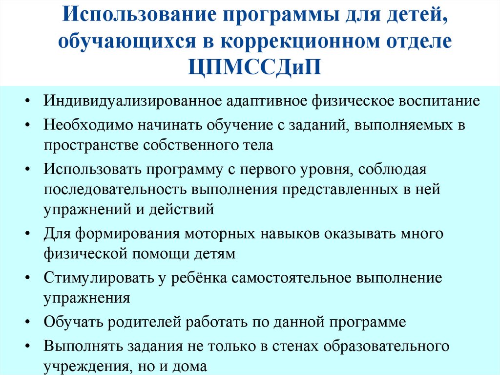 Использование программы для детей,обучающихся в коррекционном отделе