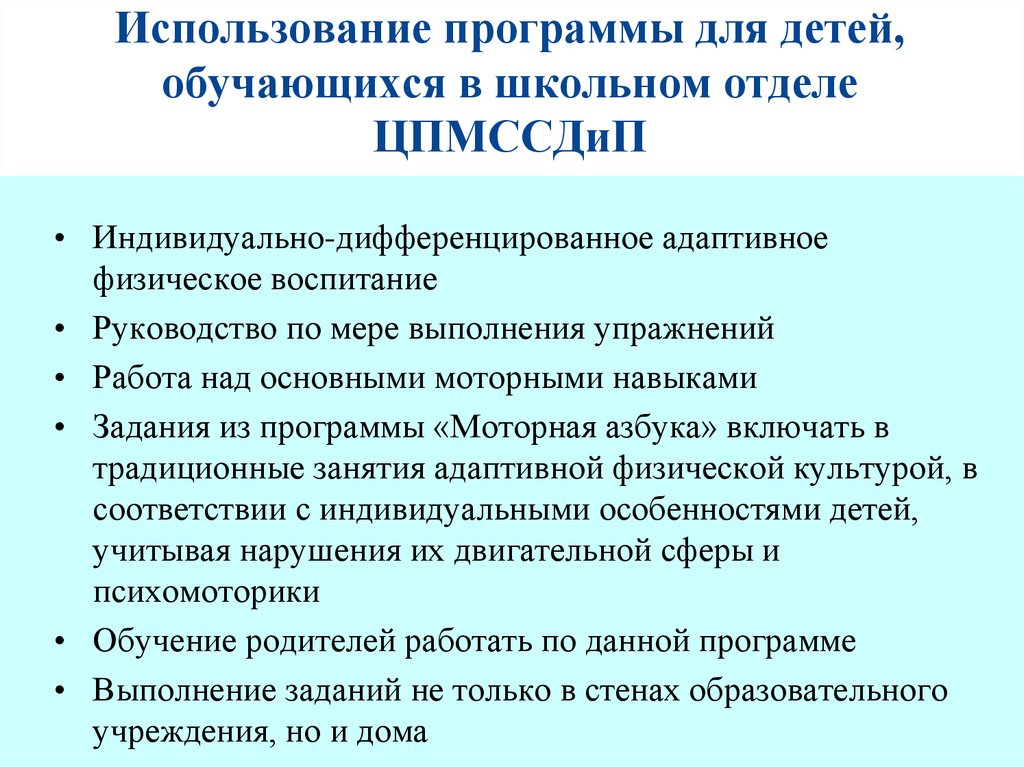 • Индивидуализированное адаптивное физическое воспитание
