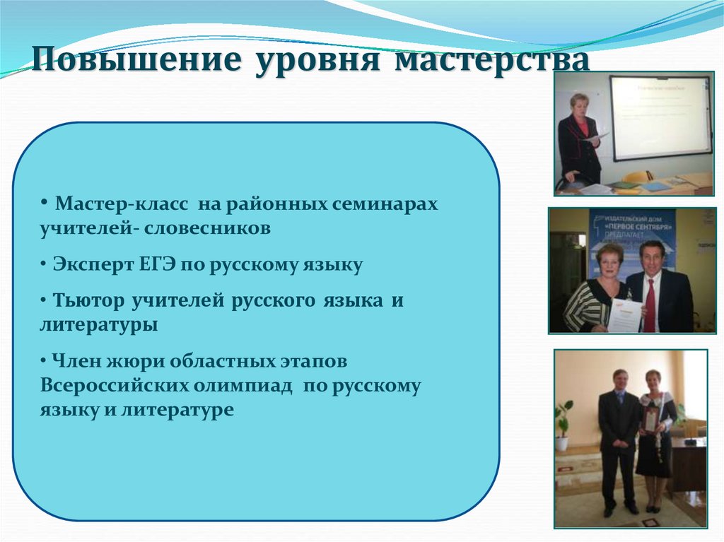 Повышение уровня мастерства• Мастер-класс на районных семинарах