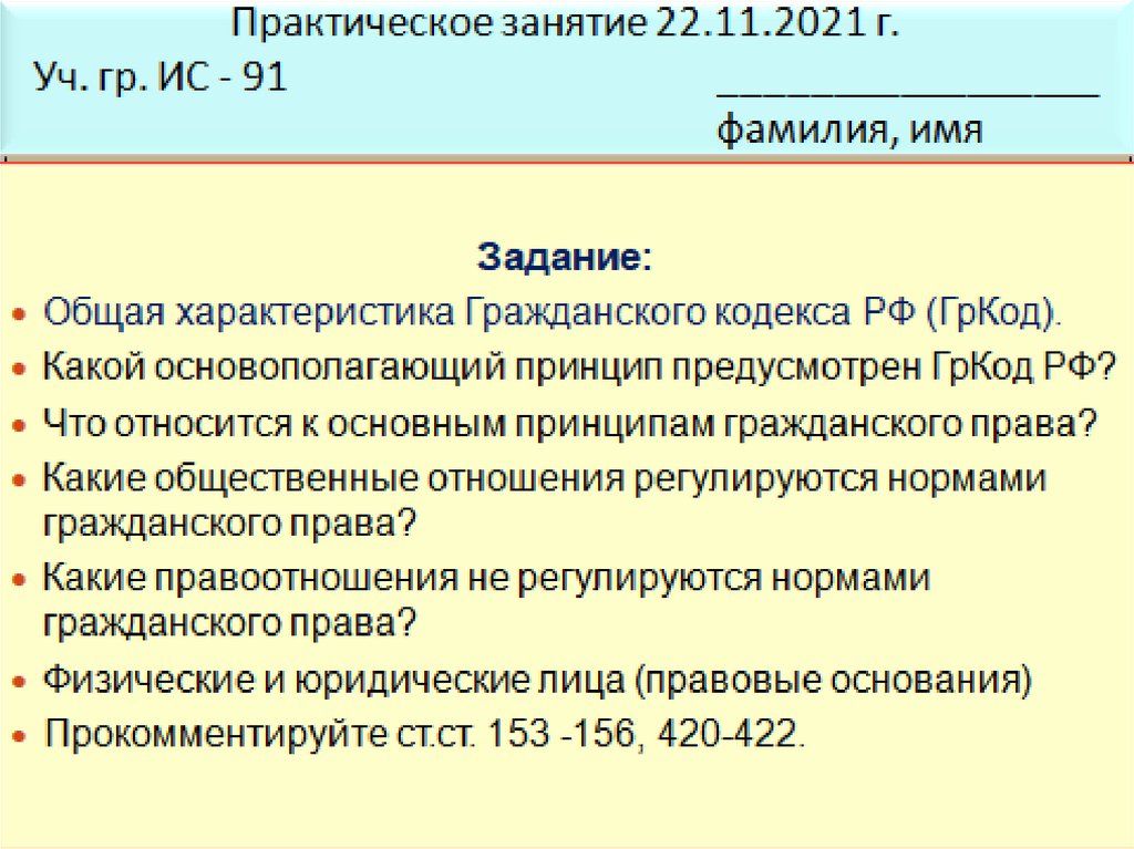 Основы гражданского права. Практическое занятие