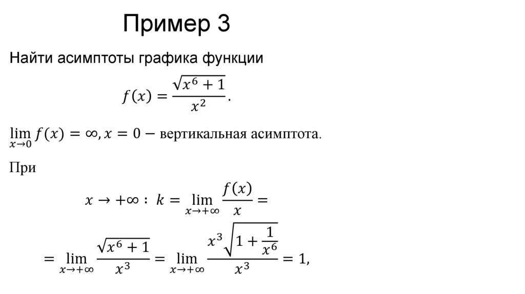 Исследование функций и построение графиков.• Асимптоты графика функции.