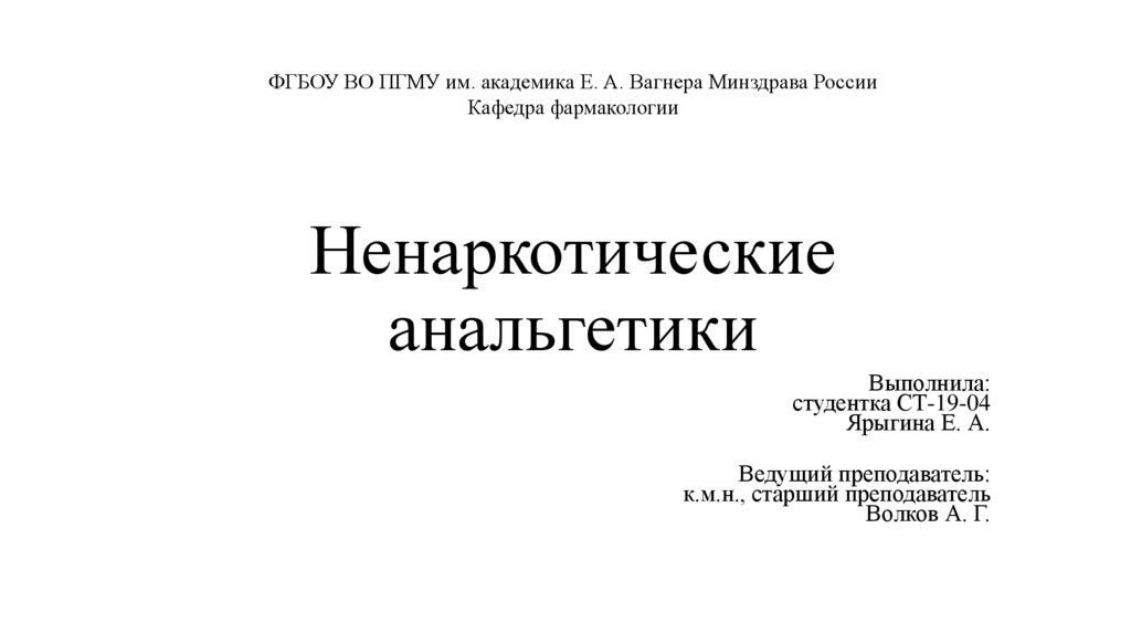 ФГБОУ ВО ПГМУ им. академика Е. А. Вагнера Минздрава РоссииКафедра фармакологии