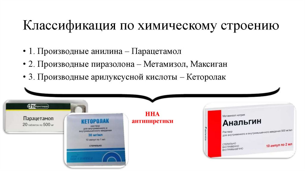 Классификация по химическому строению• 1. Производные анилина – Парацетамол