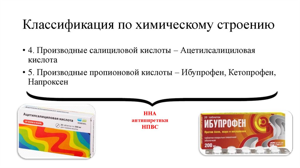 Классификация по химическому строению• 4. Производные салициловой кислоты – Ацетилсалициловая