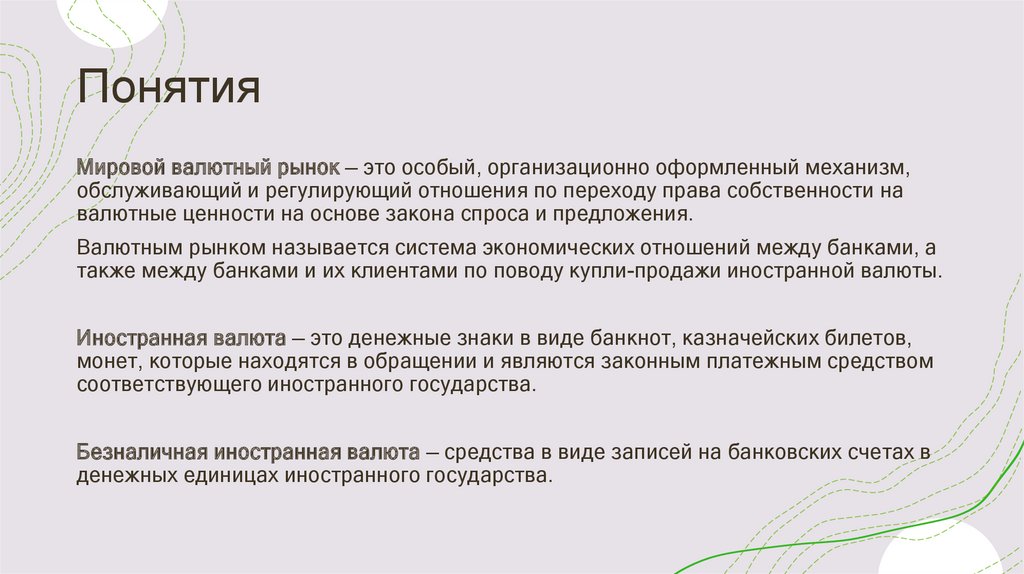 ПонятияМировой валютный рынок — это особый, организационно оформленный механизм,