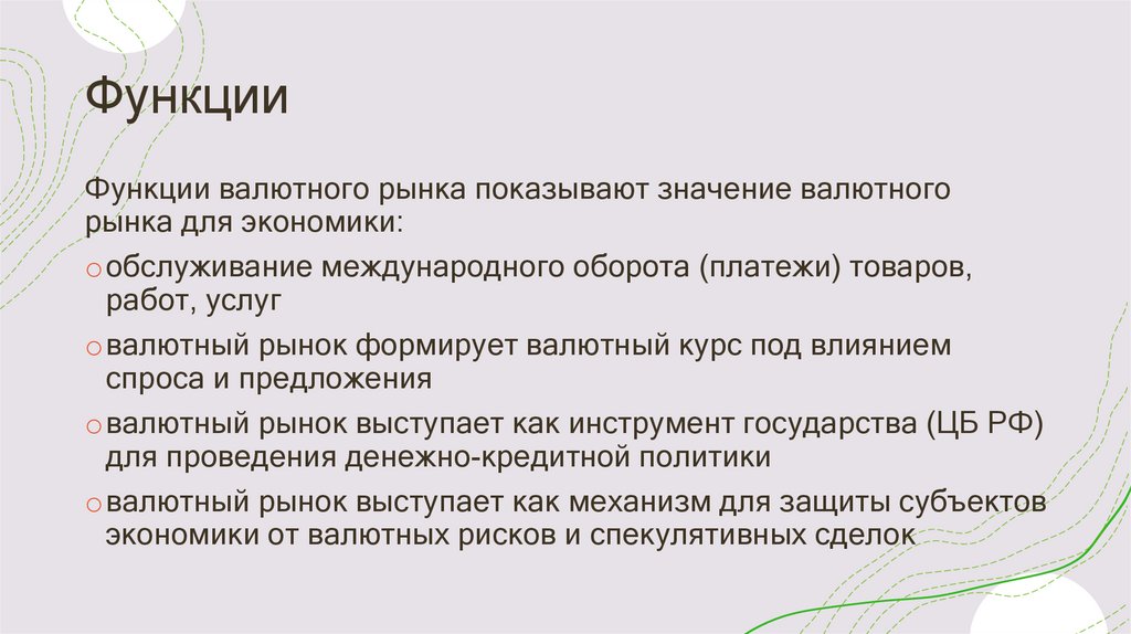 ФункцииФункции валютного рынка показывают значение валютного