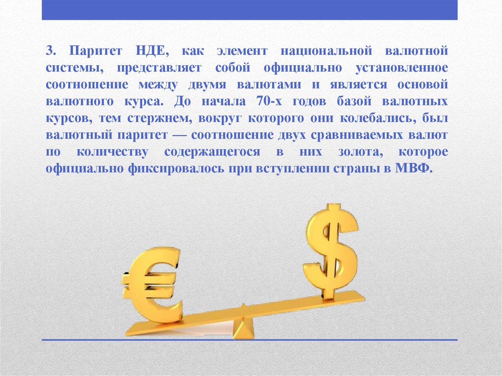 3. Паритет НДЕ, как элемент национальной валютнойсистемы, представляет собой официально установленное
