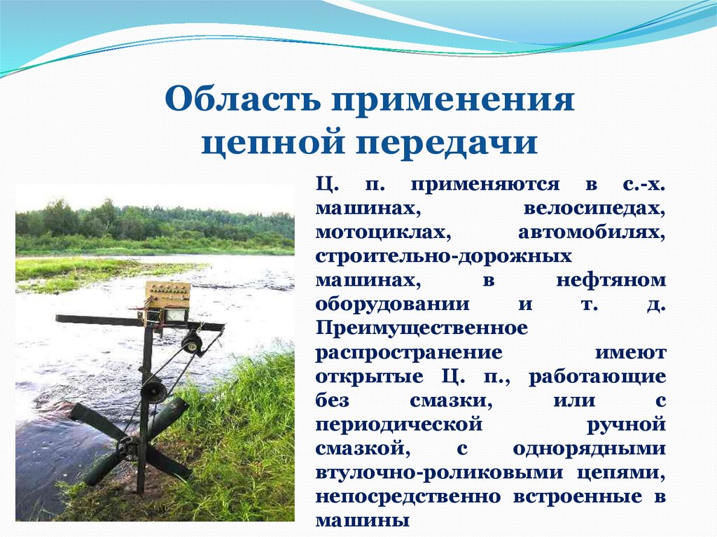 Область примененияцепной передачи