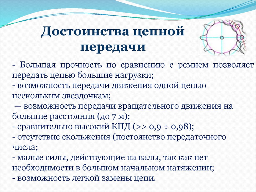 Достоинства цепнойпередачи