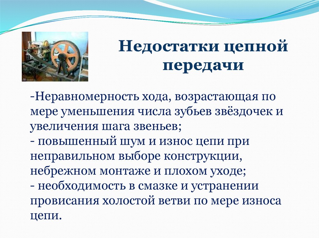 Недостатки цепнойпередачи