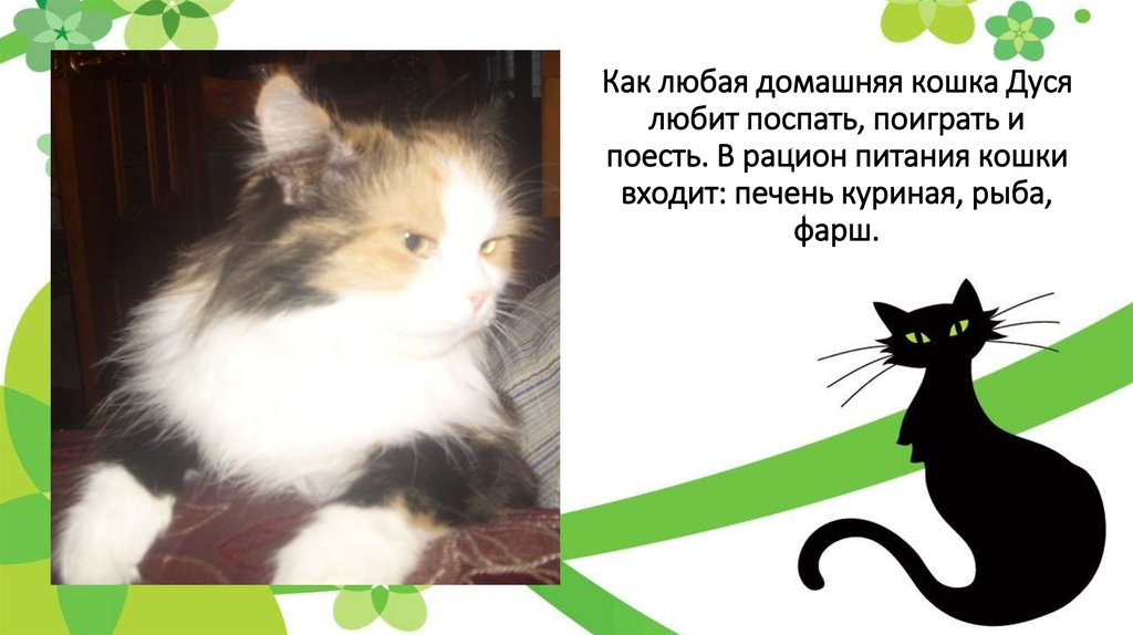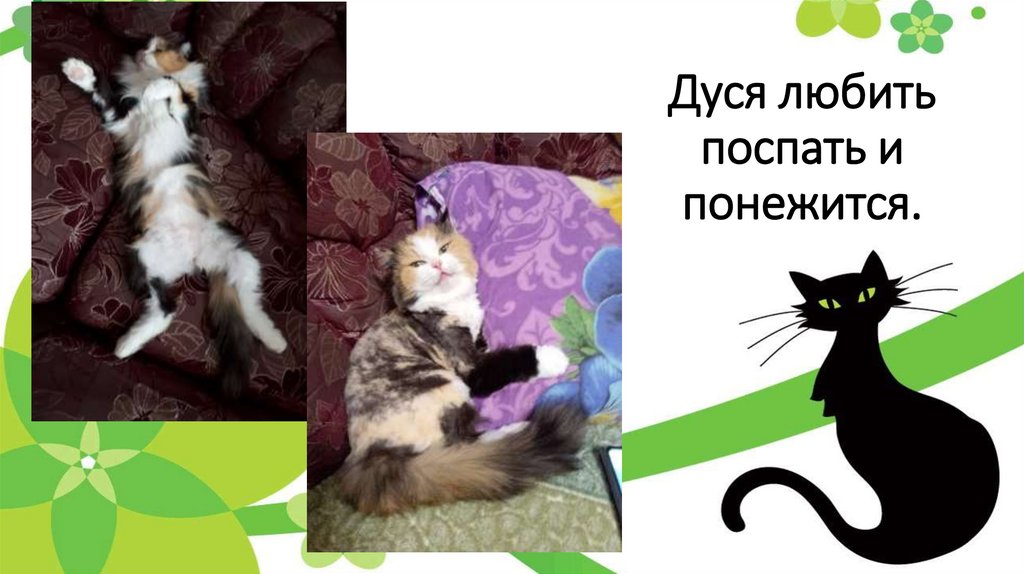 Как любая домашняя кошка Дусялюбит поспать, поиграть и