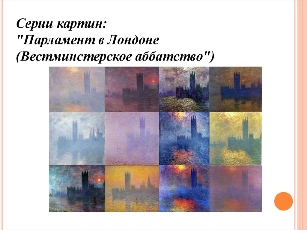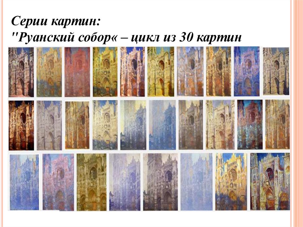 Серии картин:"Руанский собор« – цикл из 30 картин