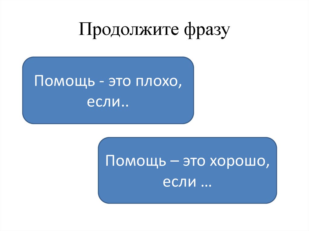 Продолжите фразуПомощь - это плохо,