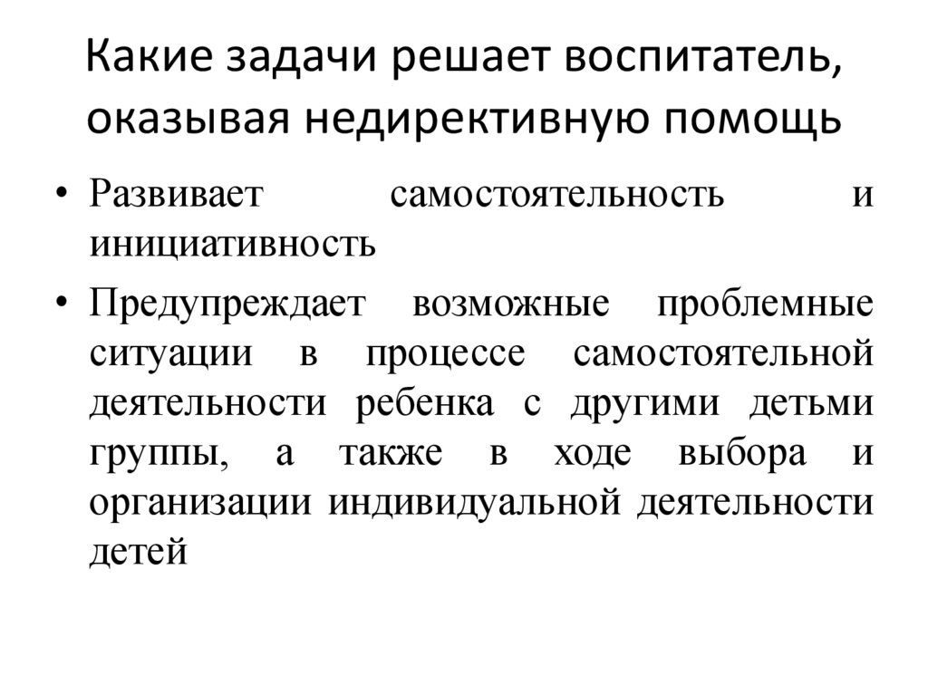 Какие задачи решает воспитатель,оказывая недирективную помощь