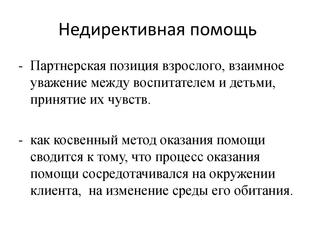 Недирективная помощь- Партнерская позиция взрослого, взаимное