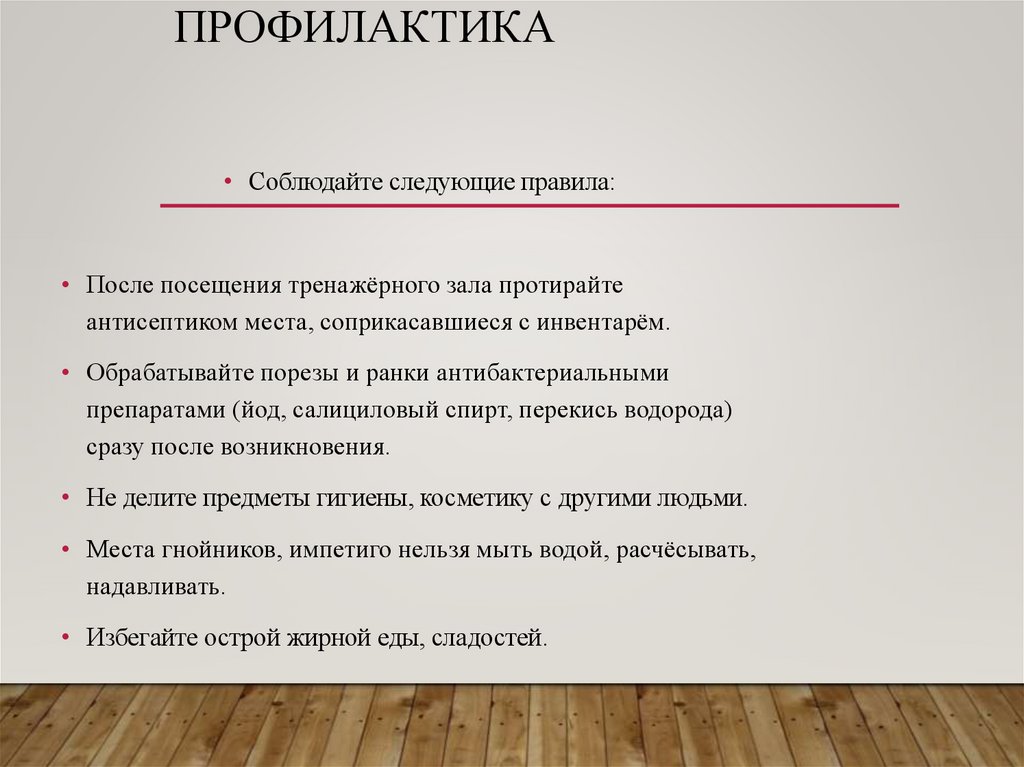 ПРОФИЛАКТИКА• Соблюдайте следующие правила: