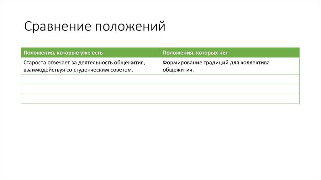 Сравнение положенийПоложения, которые уже есть