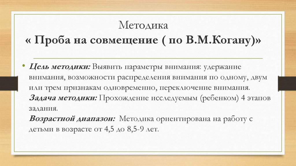 Методика« Проба на совмещение ( по В.М.Когану)»