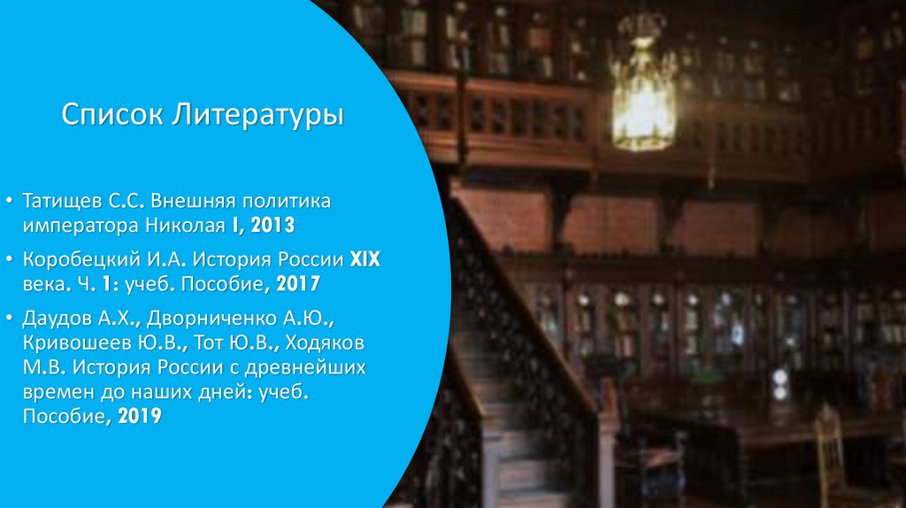 Список Литературы• Татищев С.С. Внешняя политика