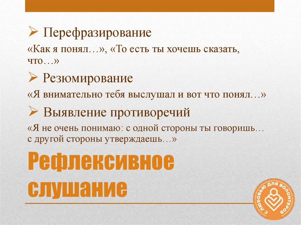 Перефразирование«Как я понял…», «То есть ты хочешь сказать,