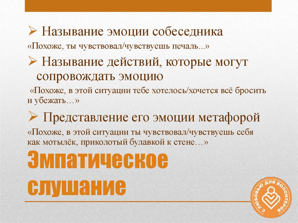 Называние эмоции собеседника«Похоже, ты чувствовал/чувствуешь печаль...»