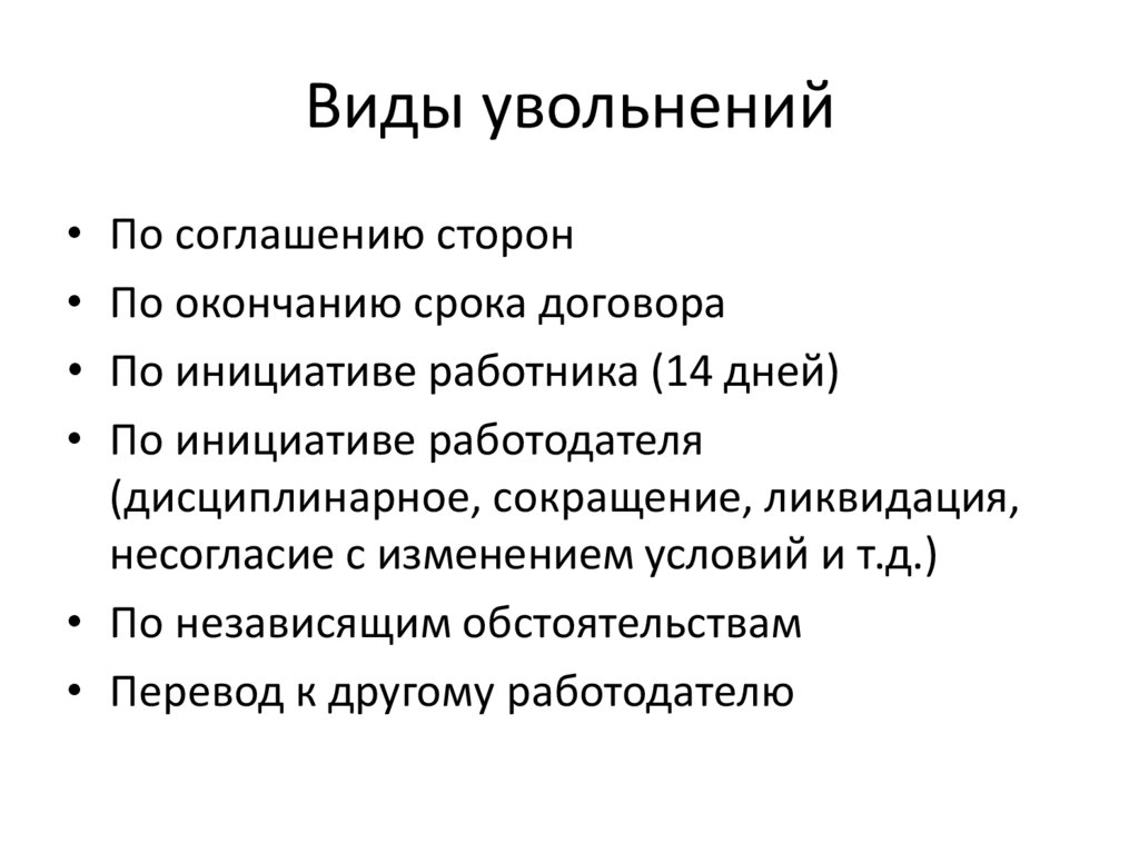 Виды увольненийПо соглашению сторон