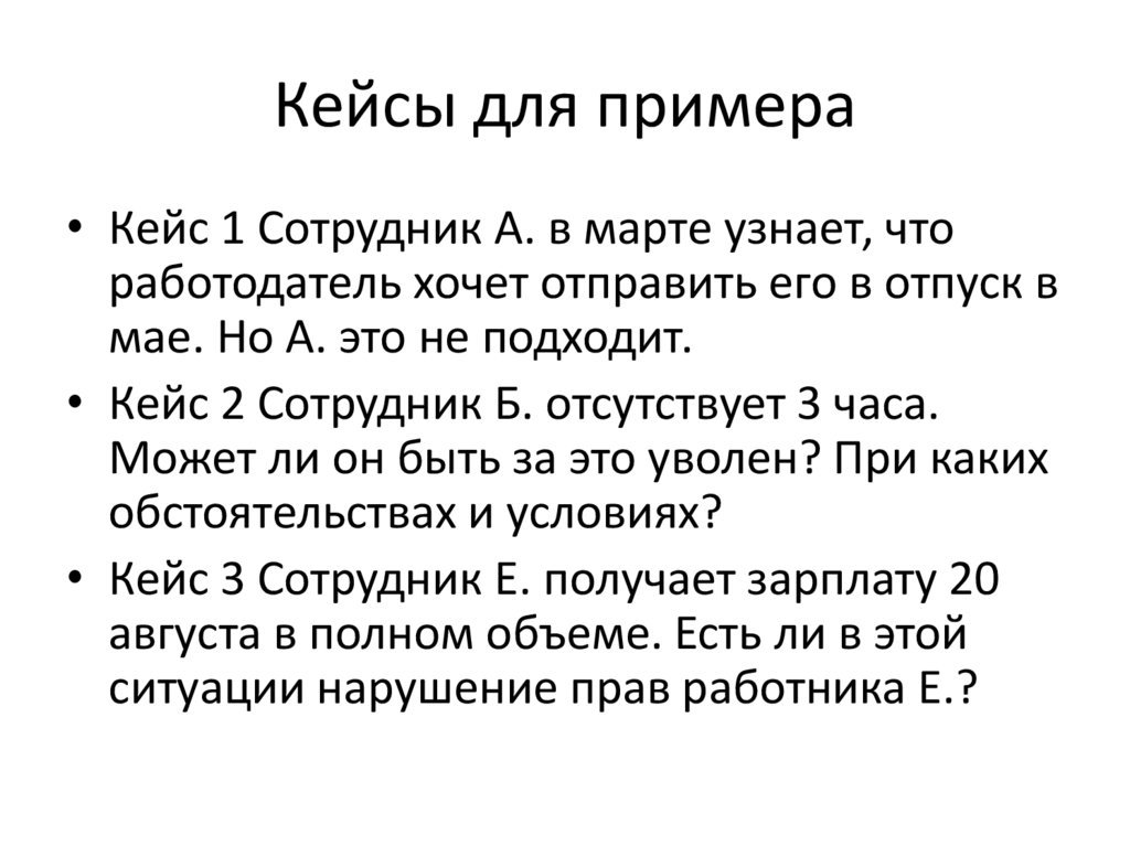Кейсы для примера• Кейс 1 Сотрудник А. в марте узнает, что