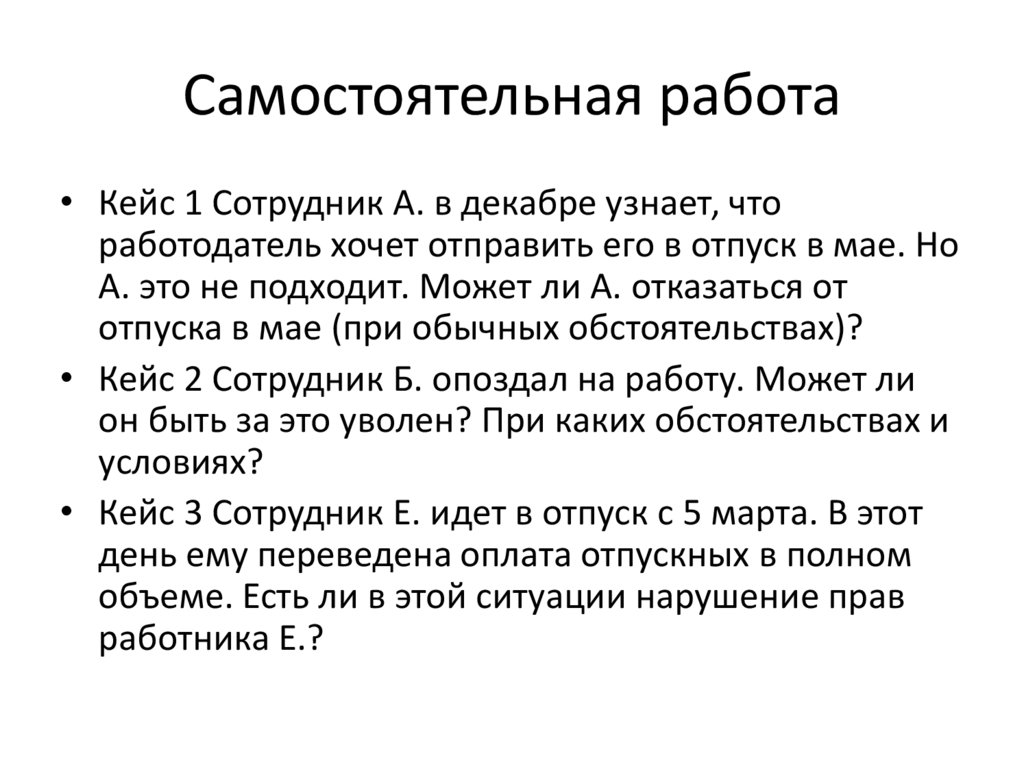 Самостоятельная работа• Кейс 1 Сотрудник А. в декабре узнает, что