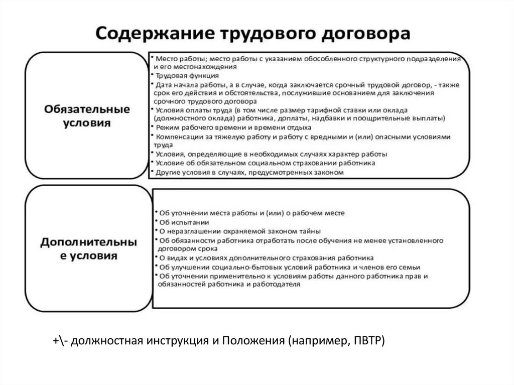 • Перечислить обязательные условия трудового