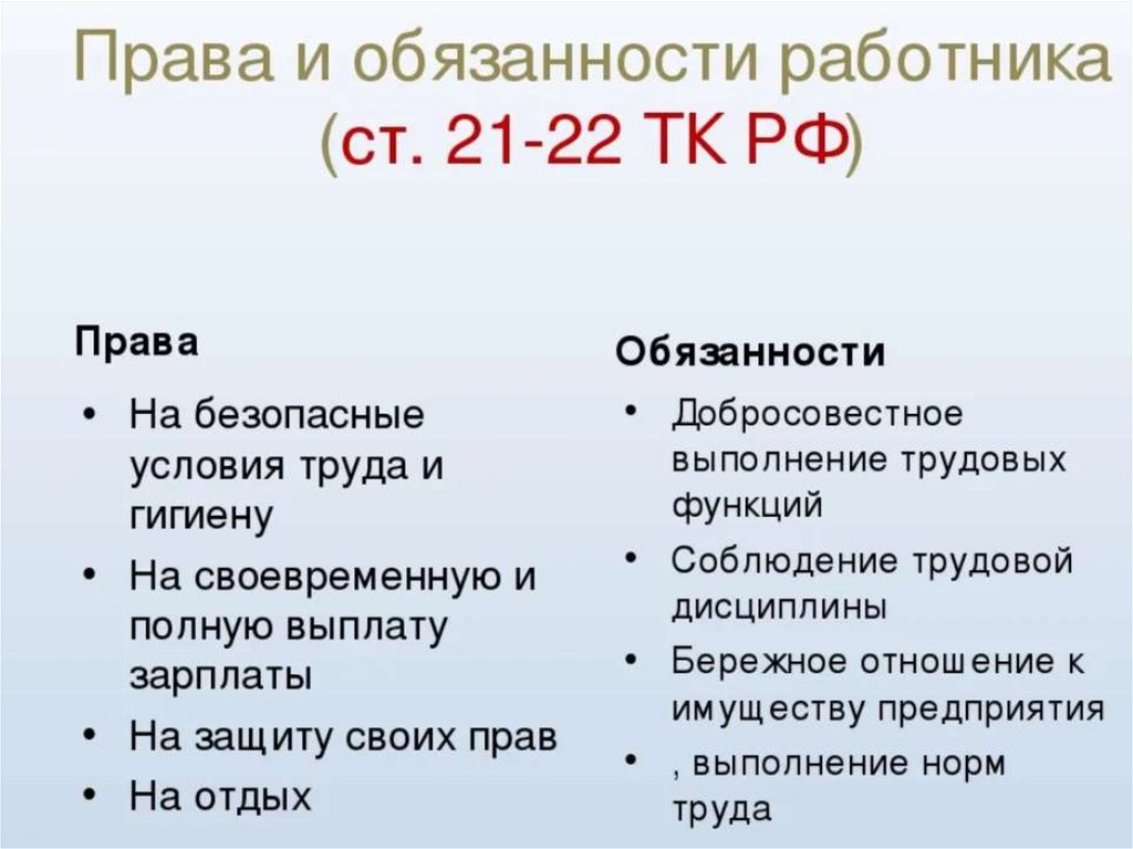 • Изучить права и обязанности работника и