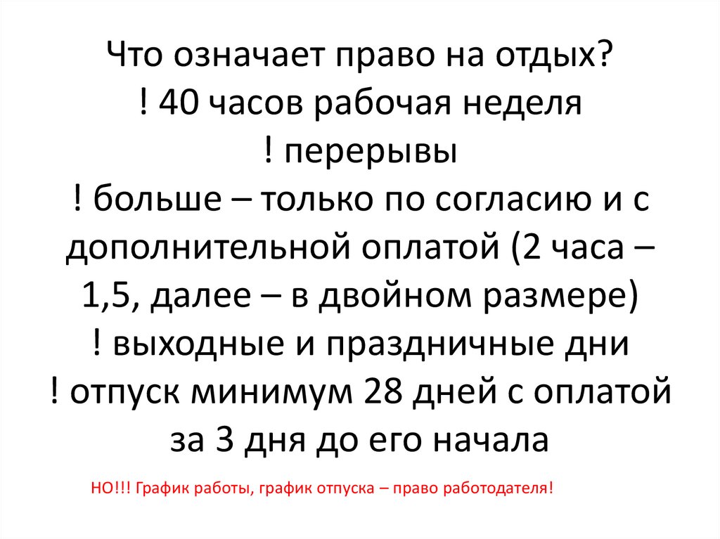 Что означает право на отдых?! 40 часов рабочая неделя