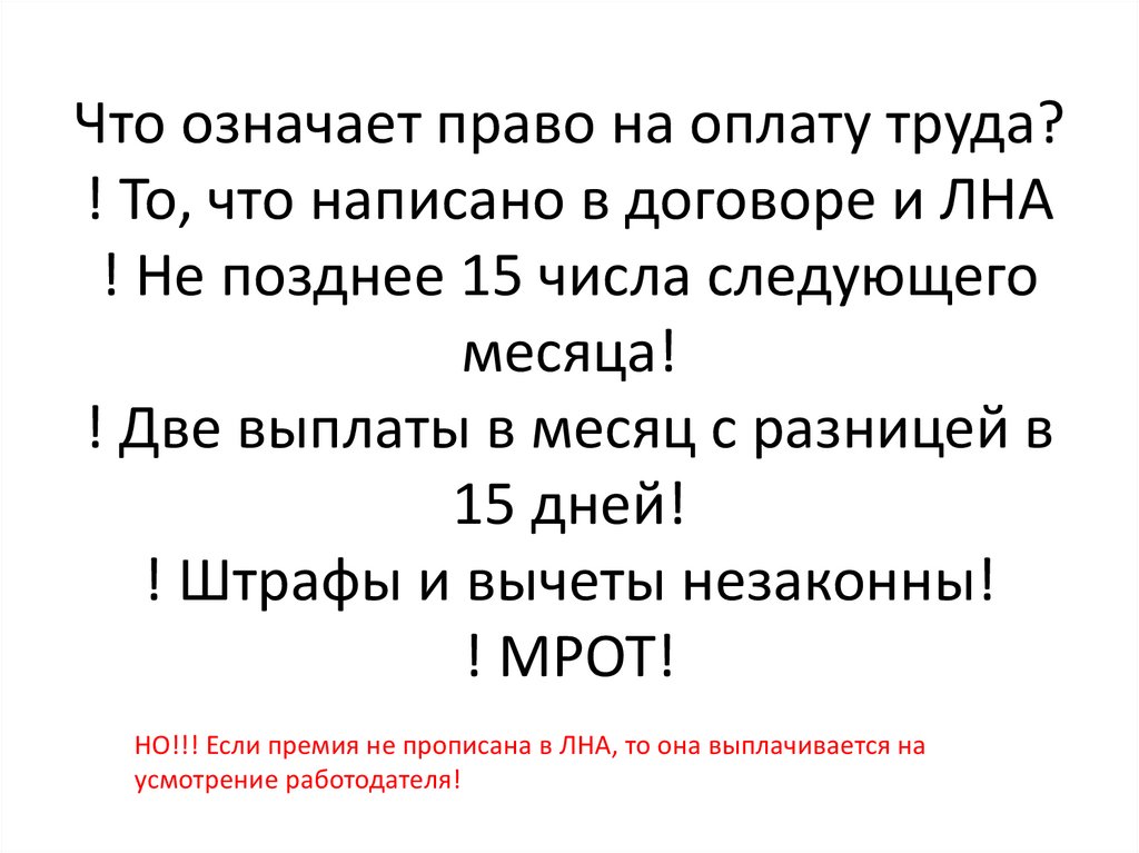 Что означает право на оплату труда?! То, что написано в договоре и ЛНА
