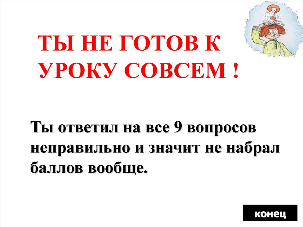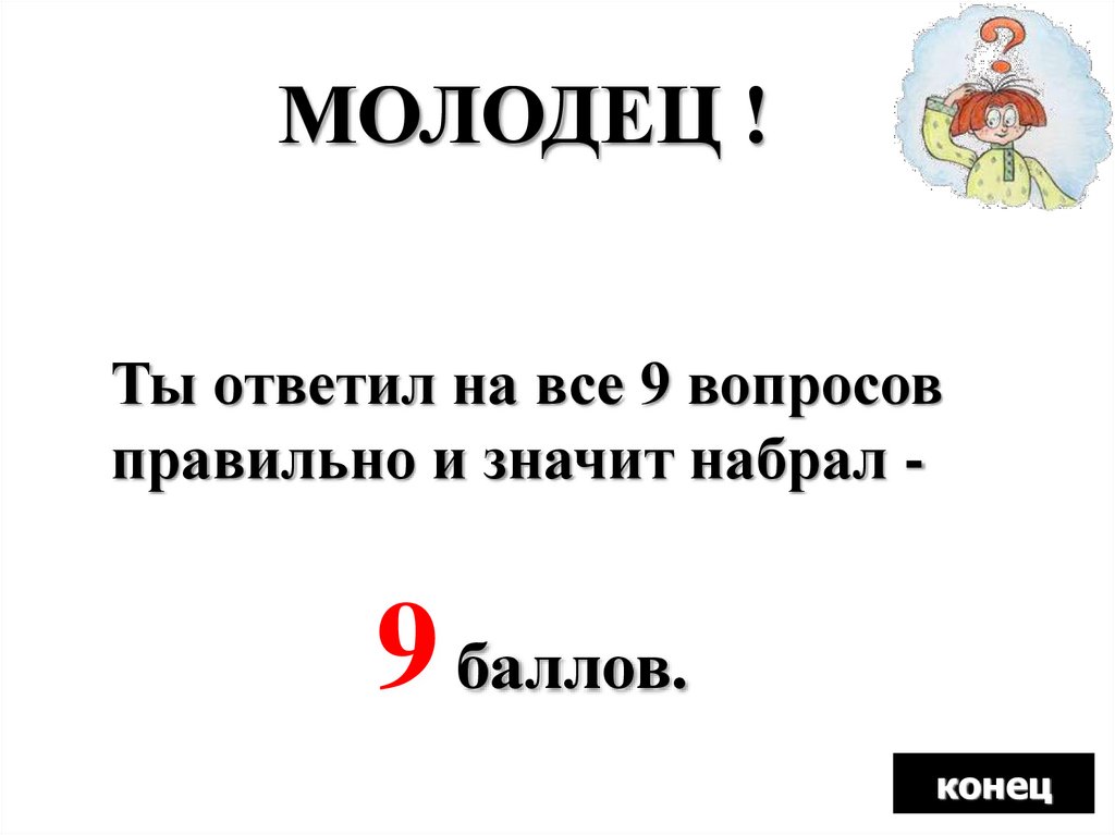 МОЛОДЕЦ !Ты ответил на все 9 вопросов