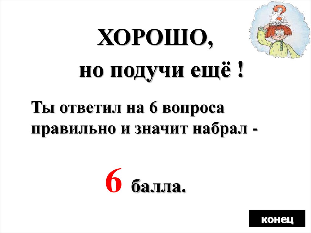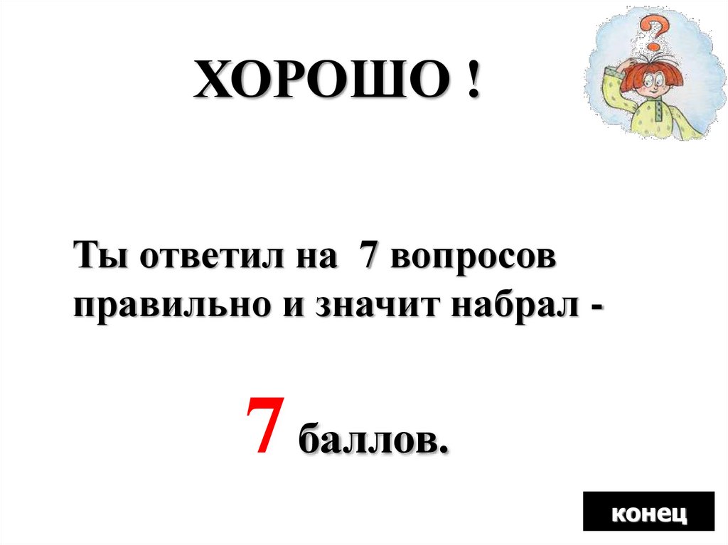 ХОРОШО !Ты ответил на 7 вопросов
