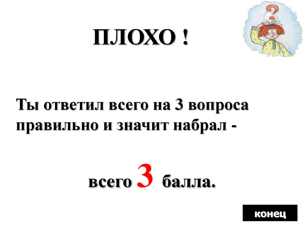 ПЛОХО !Ты ответил всего на 3 вопроса