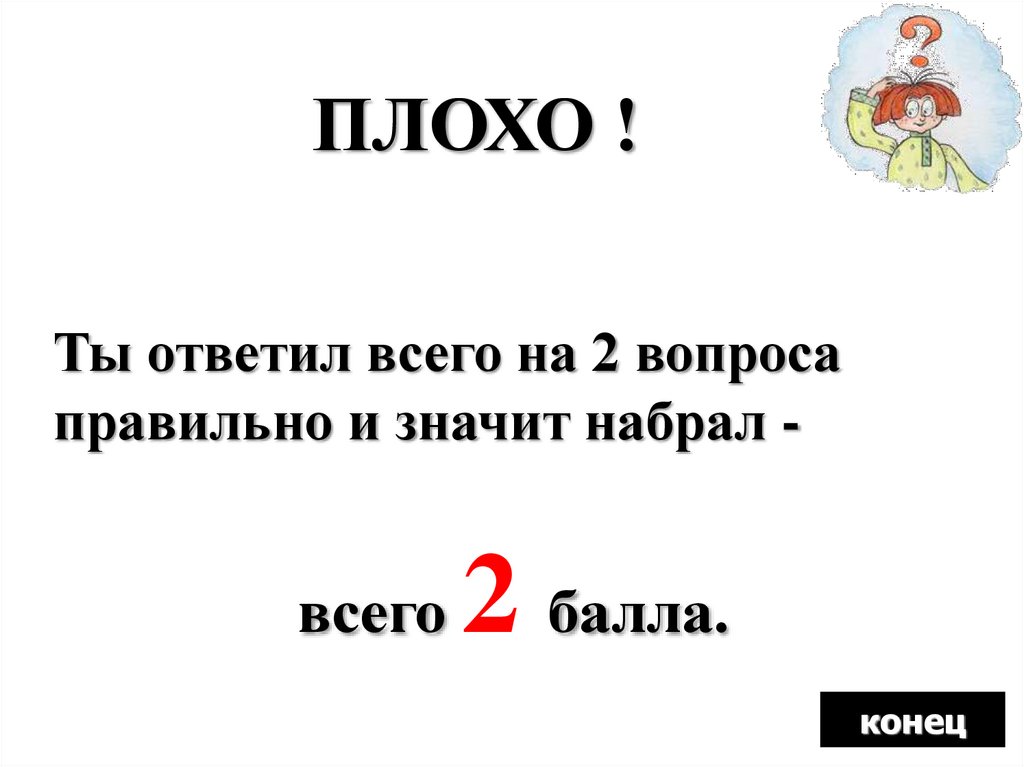 ПЛОХО !Ты ответил всего на 2 вопроса